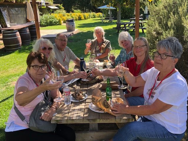 The Solvang Tour began with everyone arriving at the Solvang Inn and Cottages on Monday, September 20, 2025. Travlers came from all over the country including Connecticut, New Yourk, Iowa, Illinois, Wisconsin, Minnesota, Virginia, Pennsylvania and Oregon. The first night in town included an informal gathering for everyone including dinner and drinks around the patio/pool followed by a little down time so they could all meet and relax after a very early day of travel.